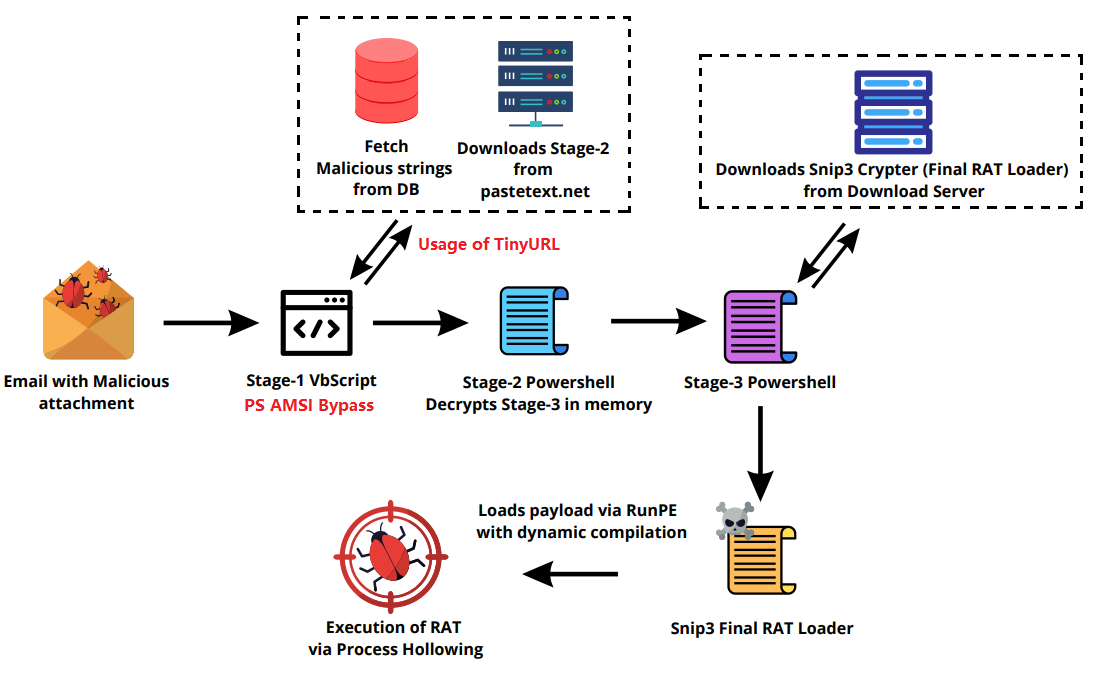 Zscaler analysts identified the crypter wedged between a Phishing email and the deployment of QuasarRAT and DcRAT payloads, obfuscating their delivery through a three-stage infection chain that featured an AMSI bypass in an attempt to evade EDRs.