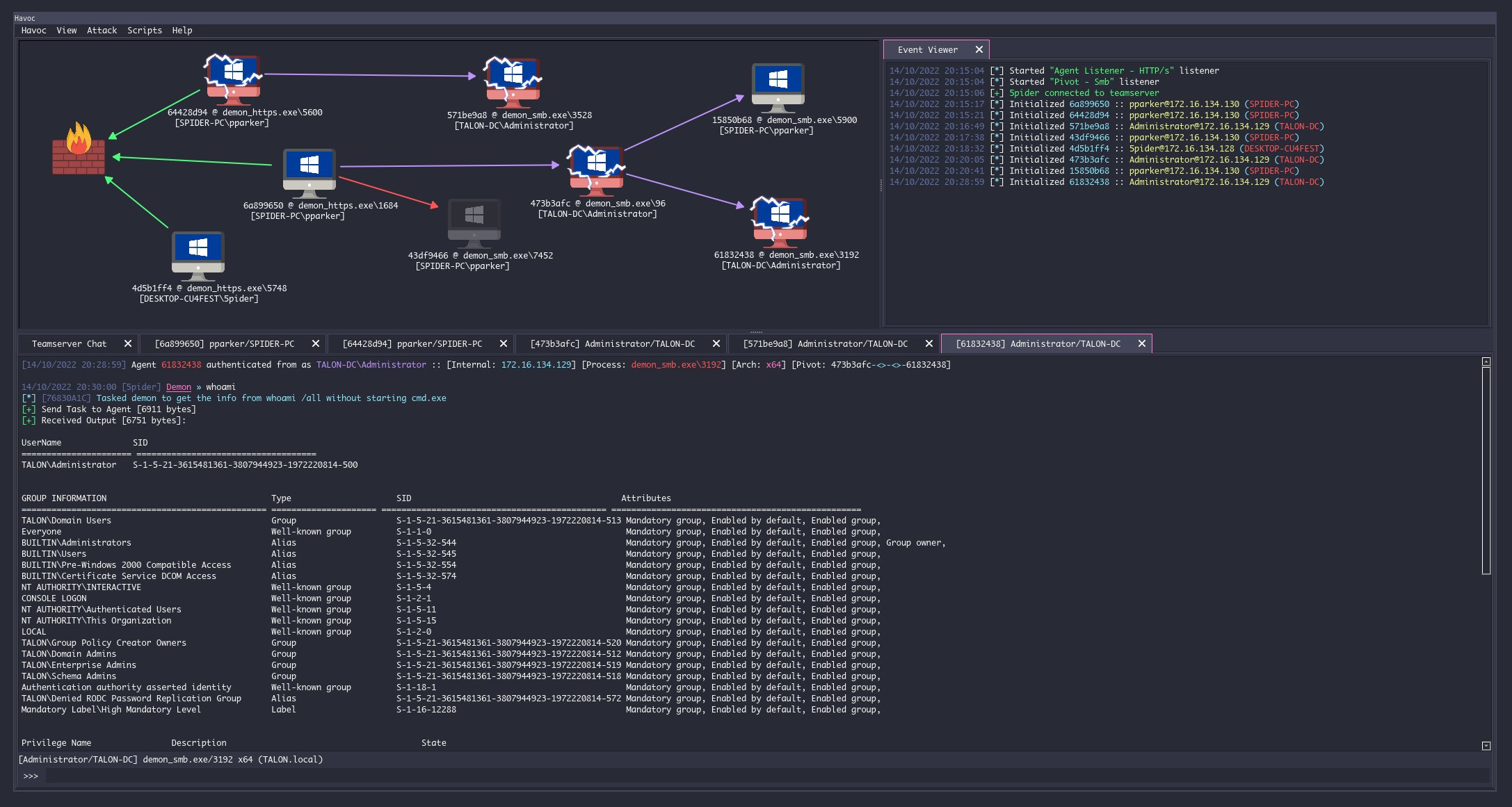Like the others mentioned above, Havoc is an open-source, and highly capable C2 framework that utilises the familiar architecture of a Teamserver and Implants - referred to as “Demons” within the project.